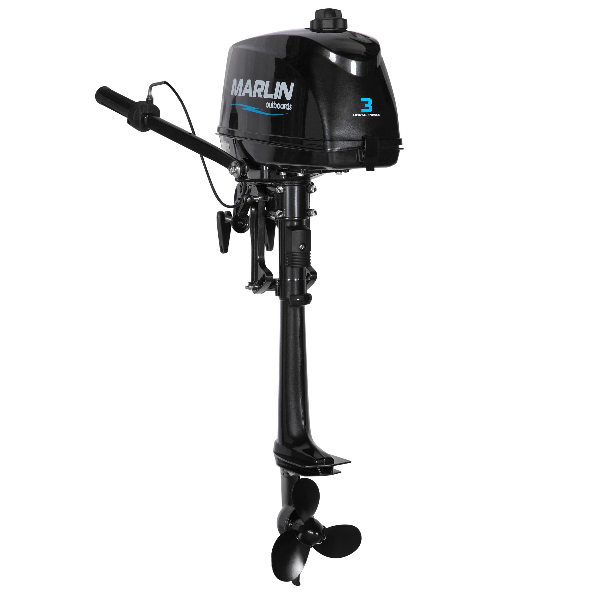 Лодочный мотор MARLIN MP 3 AMHS представляет собой компактный подвесной лодочный мотор. Простая конструкция делает моторы MARLIN неприхотливыми в обслуживании, а небольшой вес – очень важный фактор для владельцев надувных лодок, которым постоянно приходится переносить лодочный мотор с места на место. Специальный алюминиевый сплав и 5-тислойное покрытие обеспечивают антикоррозийную устойчивость.