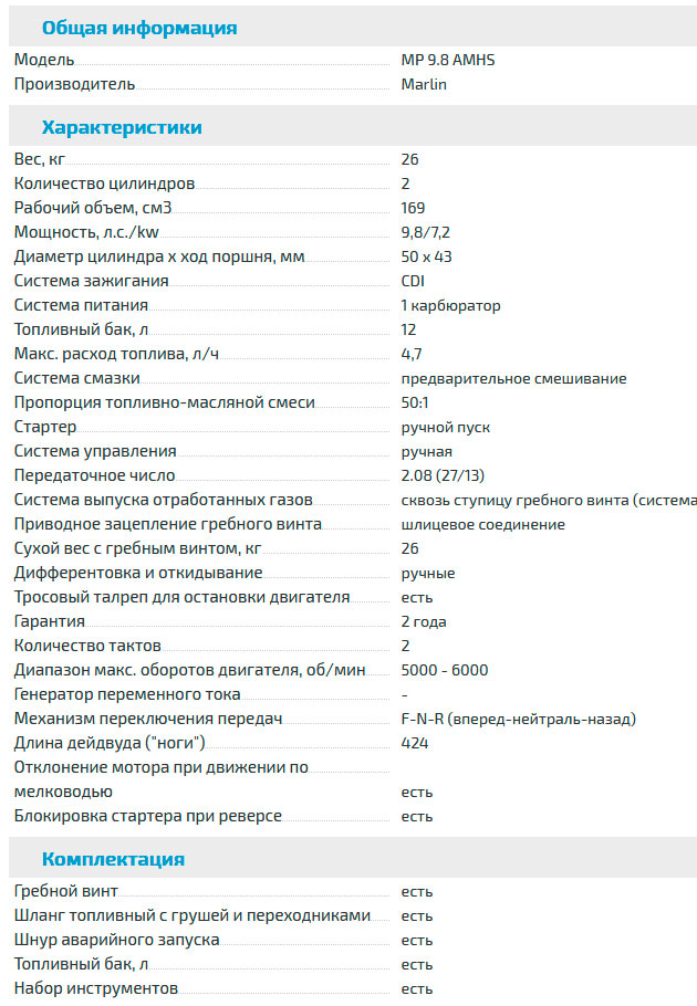 Надёжный и легкий лодочный подвесной двухтактный мотор MARLIN MP 9.8 AMHS отличается высоким качеством изготовления и удобством эксплуатации.